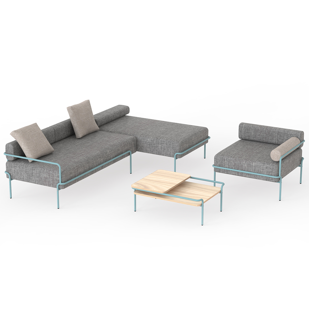 Rotte and Sára Kele created a brand, TANGENS, whose delicate, airy furniture exploit modularity to meet new requirements and which can be easily moved around in spaces, and evoke environmental comfort we tend to associate with home offices.
